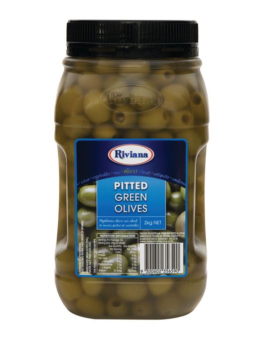 2kg RIVIANA PITTED GREEN OLIVES