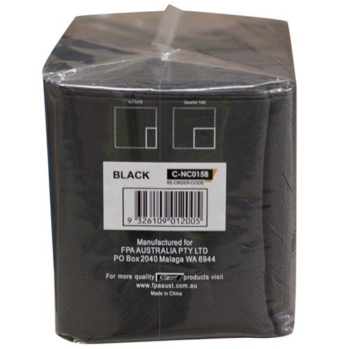 250'S COCKTAIL NAPKINS BLACK QTR FOLD